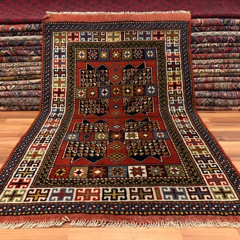 Hyvin vanha, käsin solmittu villamatto. Erittäin kaunis matto. Mukavan kokoinen ja sopii mihin tahansa huoneeseen ja keittiöön. Matto on yleisesti ottaen hyvässä kunnossa.