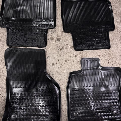 Kuvan käyttämättömäksi jääneet kangasmatot. Vain apuskin matto ja vasemmanpuoleinen takapenkin matto.