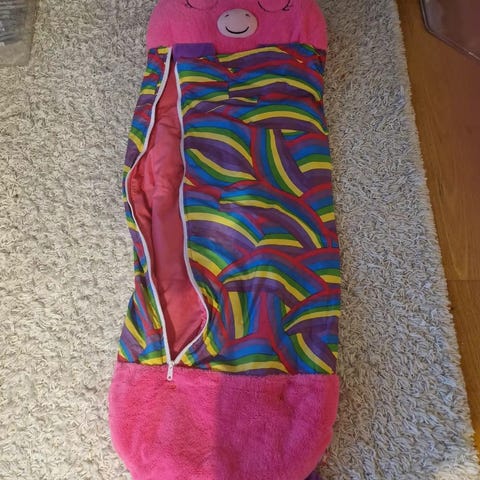 Myynnissä ihana lähes uudenervoinen makuupussi pehmeällä tyynyllä.