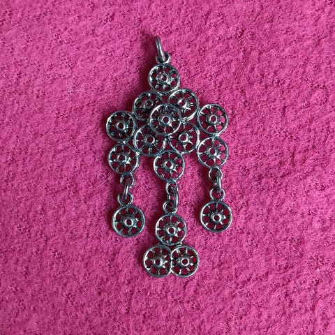 Myydään metallinen kaulakoru. Ketjun pituus noin 48 cm.
