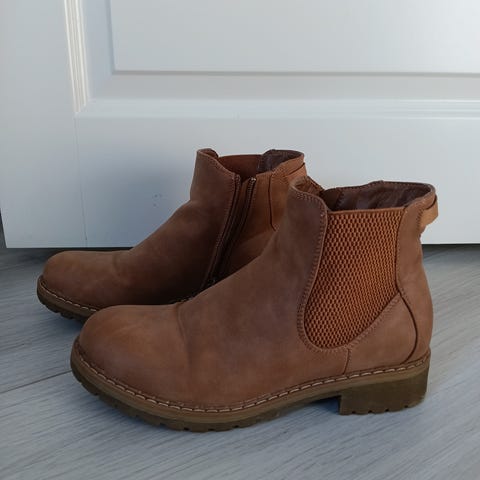 Myydään käytetyt, mutta oikein hyväkuntoiset ruskeat nilkkurit. Nilkassa on valkoinen karvareunus, jossa näkyy tummentumista käytöstä. Koron korkeus 6 cm. Ostettu Nahkapaikasta.