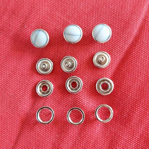 Avaamaton pakkaus metallinvärisiä Artesan painonappeja.