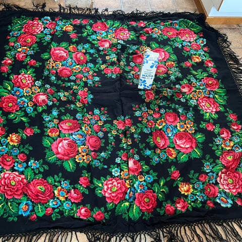 Myydään kaunis maatuskahuivi / villahuivi kooltaan 67 x 72 cm + hapsut