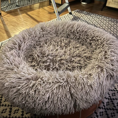 Valkoinen pörröinen pehmuste pienelle koiralle tai kissalle