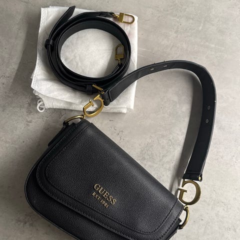 GUESS olkalaukku, muuten hyvä kunto, mutta kulumaa läpän alla (näkyy kuvissa). Laukussa on tyylikäs kuviointi ja käytännöllinen sisätila, jossa on vetoketjullinen tasku. Olkahihna on säädettävä, mikä lisää käyttömukavuutta. Sopii arkeen ja juhlaan.