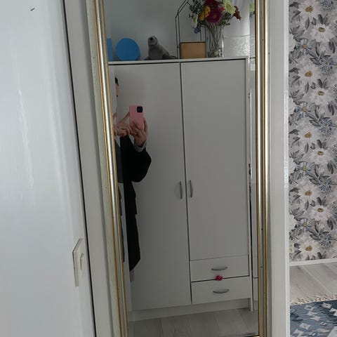 Kaunis kukkakuviolla koristeltu kultainen peili, sopii seinälle tai tasolle esimerkiksi koriste-esineiden alustaksi