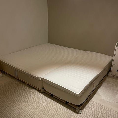 HUOMIO! Meidän varastosta löysimme tämän sängyn rungon laitoja, jotka ovat 200 cm pitkiä. Laitoja ovat