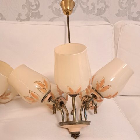 Kattovalaisimet 60 luvulta , l 30 cm k 14 cm , valaisimet pesty ja sähköjohdot uusittu.