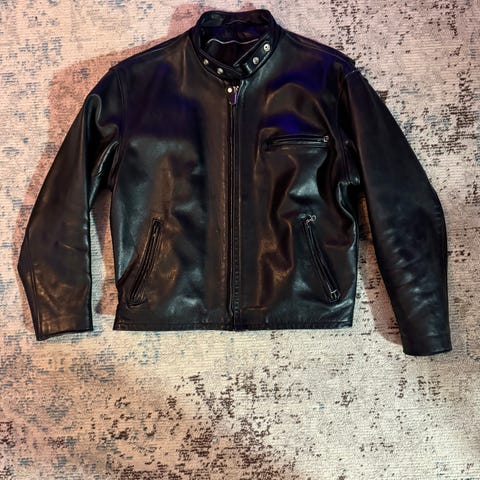 Myyntiin kuvien tummasikarinruskea Chevignon AG 29/B biker nahkarotsi kokoa L/EUR52. Rotsi on paksua säännöllisesti rasvailtua lehmännahkaa, kevyesti topattu vuori jossa kaksi povitaskua, valmistettu Ranskassa. Laatu ei kalpene Schottin tai Aeron takeille. Erittäin ryhdikäs, suljettuna tyköistuva rotsi. Myyn ikäännyttyäni semihaikeana vähäisen käytön vuoksi. Netistä löytyy hintarefeä. Viimeisessä kuvassa ensimmäinen vastaava takki googeltaen.