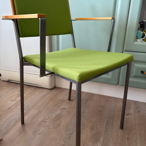 Myydään kaksi Askon tuolia. Tummanruskeat käsinojat ja siniset istuinosat. Yhteishinta 50e