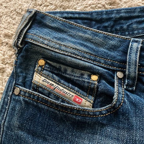 Miesten Diesel-merkkiset farkut napeilla.
