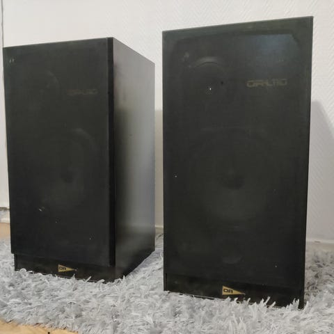 2kpl Olavi Räsänen OR-Zound R1 CA kaiutin Ikea Gåje jalustoilla ja 1kpl OR C80 keskikaiutin.