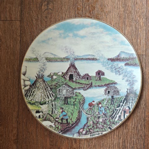 Arabian vuosi lautanen 1982. Kolmas lautanen kuuden kpl sarjasta. Halkaisija 30cm, tämä on iso lautanen. Alariesto lautasia on myös pienikokoisia Arabian tekeminä