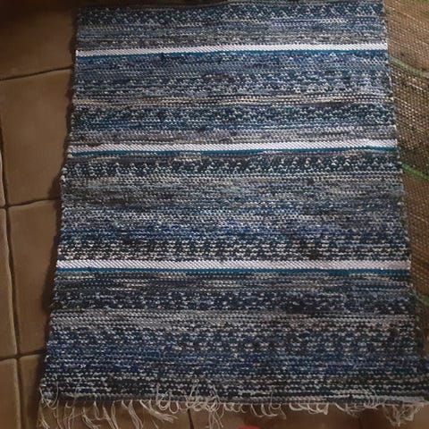 2 kpl kuvan mukaisia räsymattoja. Molempien leveys 80cm. Pituuksissa vähän heittoa. Matto 1. pituus noin 395cm ja matto 2. pituus noin 390.