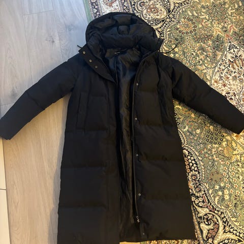 Röhnisch pitkä toppatakki musta. Todella lämmin ja hyväkuntoinen. Tällä takilla ei palele kovillakaan pakkasilla. Takki pesty ja rumpukuivattu.