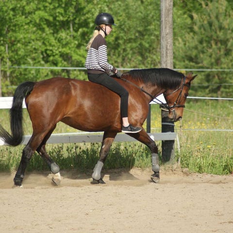 Työstetty paljon maasta käsin, tästä tykkää ja selkeästi myös hyötyy. Menee taluttamalla mihin vain ja väistää hyvin ihmistä.