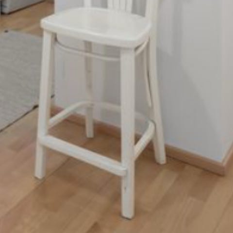 Thonet-tyylinen vanha korkea jakkara. Ehjä ja tukeva. Ei ole uudistuotantoa, kasattu vanhoilla talttapääruuveilla.