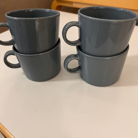 Myydään 6 kpl Iittalan teema sarjan kahvikuppeja. Pienempi kuppi, korkeus 5 cm. Halkaisija 7 cm. Hyvä kunto, en muista, että olisi koskaan käytetty. Kaikki kerralla.