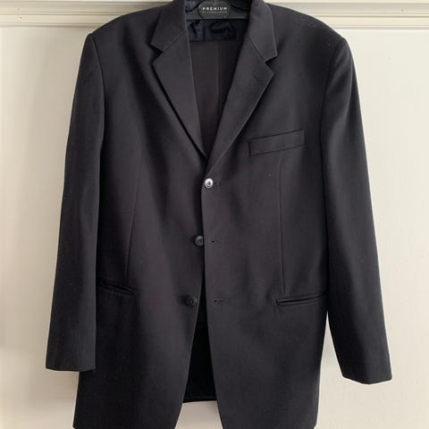 Uusi Magee merkkinen tyylikäs tumma miesten puku. Laadukasta kangasta. Ei merkkejä koosta, mutta mukana tullut kauluspaita on kokoa D47, eli olisiko ns. L. Tule sovittamaan ja tee tarjous!!!!