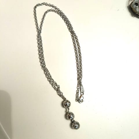 Alkuperäisessä laatikossaan käyttämätön Liisa Vitali kaulakoru, valmistettu hopeasta. Pituus noin 65 cm.