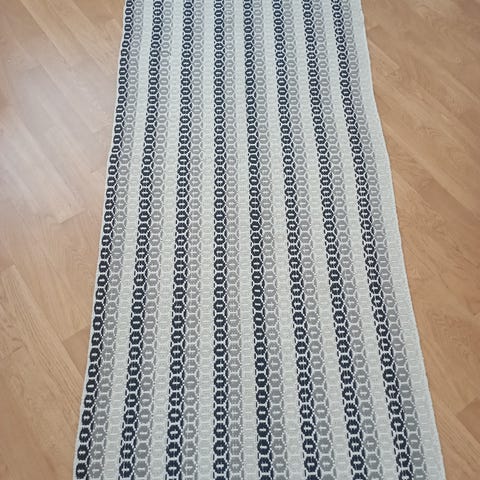 Pieni puuvillamatto, pesty kesällä mattolaiturilla ympäristölle haitattomalla, miedon tuoksuisella Pore-saippualla. Ei ole ollut käytössä pesun jälkeen eli saat maton puhtaana kotiin. Koko n. 55x160cm. Väritys oranssi-valkoinen.