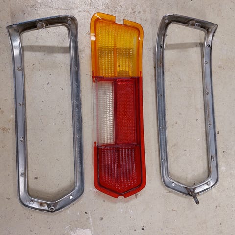 Vanha takavalon lasi, peruutusvalon linssi puuttuu, siihen on tehty muovista kupu.
