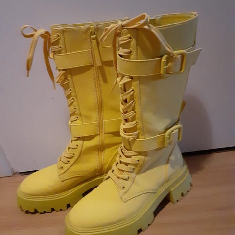 Saappaat, koko 38. Keltainen nahkaa, täysin uudet. Tarjoavat mukavuutta ja hyvän pidon eri sääolosuhteissa.