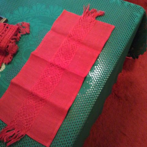 nyplätty pitsi, pellava keskiosa. kauniit joulu punaiset liinat. uudet. hinta 10 kpl