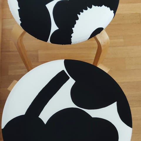 Tuoli jakkara Marimekko Unikko kankaalla