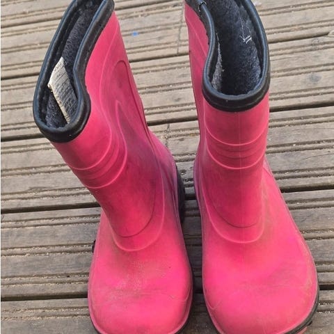 Myydään lasten vuorelliset saappaat, alaosa kumia joten hyvät loskakeleille, koko 28/29.