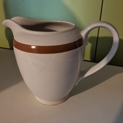 Ehjä, käytössä ollut kannu, ulkopuolella pinnassa krakeloitumaa.