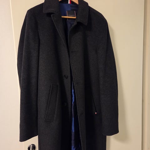 Tommy Hilfigerin erittäin siisti tummansininen villakangastakki kokoa S/175 cm. Tyylikkäässä takissa on suora leikkaus. Takin kangas 75% villaa ja 25% nylonia.