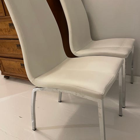 Tuoleja on olemassa 4 kappaletta ja kaksi lisätuolia saa halutessaan myös kaupan päälle mukaan. Ovat vain huomattavasti kuluneemmat ja keinonahka repeytynyt.