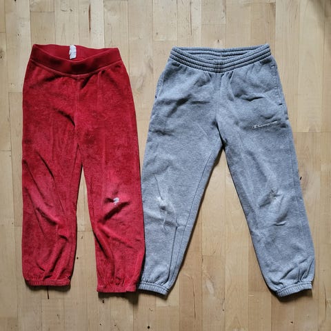 Annetaan pienen ihmisen 80-kokoiset housut, joiden vyötäröltä puuttuu nappi.