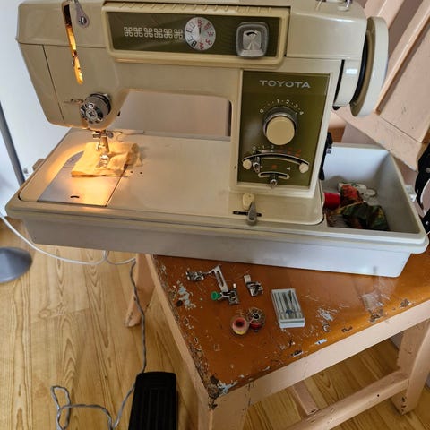 Myydään ompelukone ja sen säilytyspöytä