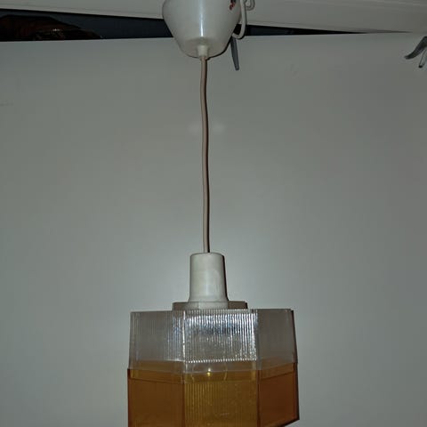 Hyväkuntoinen kolmihaarainen kattovalaisin.
