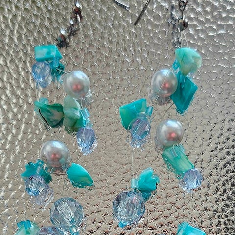Kauniit ja näyttävät korvakorut turkooseilla kivillä ja helmimäisillä yksityiskohdilla. Sopivat täydellisesti juhliin tai asun piristykseksi arkeen.