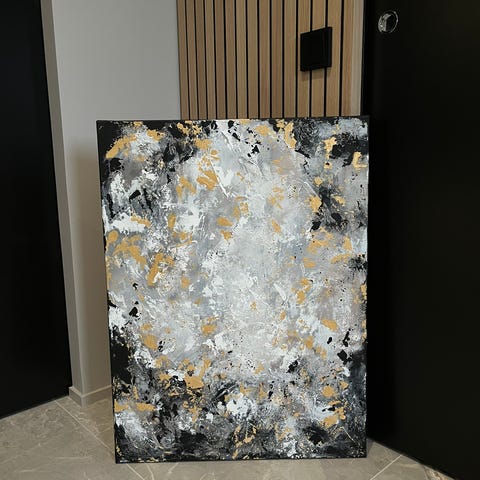 Hand-painted painting as seen in the photos for sale, painted with various techniques (acrylic paint, gold glitter, sand). width 30 cm and height 42 cm.