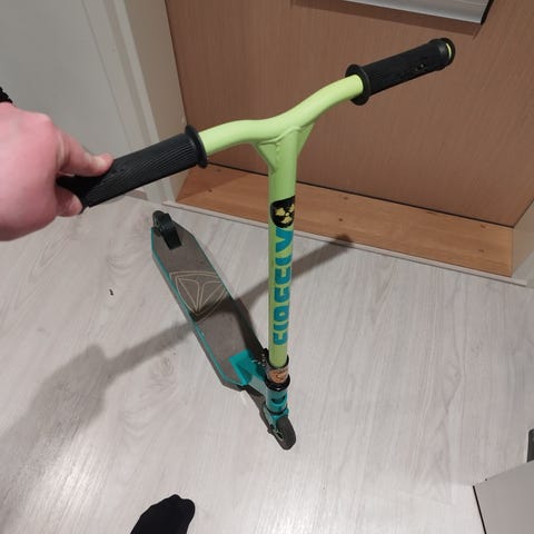 Bumprider istuimella. Toinen kiinnike poikki mutta ehjä on hankittuna.