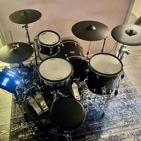 Mesh pädit 4 kpl. Ride 3 alueinen. Crash 2 alueinen. Basari pädi.