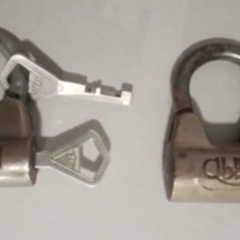 Myytävänä Abloy-lukko ja kaksi avainta.