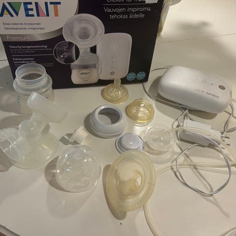 10/2021 ostettu sähköinen rintapumppu. Käytössä ollut n. 1,5v ajan. Edelleen toimiva ja kaikki osat ehjiä ja tallessa. Nouto Espoosta.