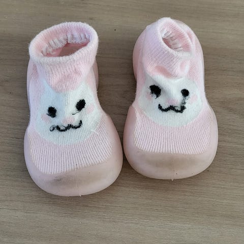 Tarrakiinnitteiset pinkit varsikengät kokoa 18-19. Tekoturkissomisteet. H&M.