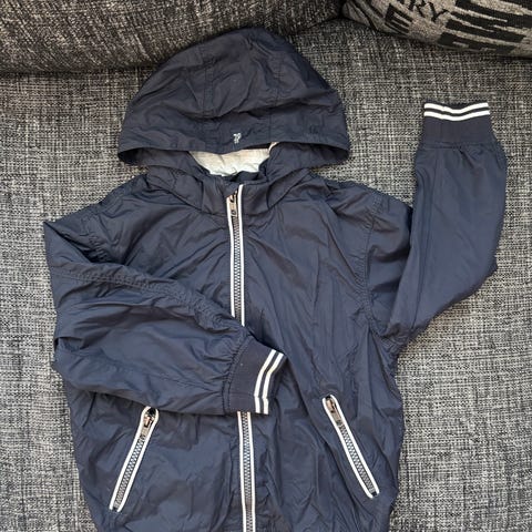 Yhdellä lapsella käytössä ollut sinisävyinen Peuhu merkkinen tuulitakki kokoa 110. Kunto hyvä mutta käytetty, yksi pieni reikä helmassa kts. kuva.