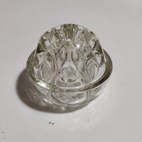 Kaksi Riihimäen lasi kukkapidikettä. Toisessa särö