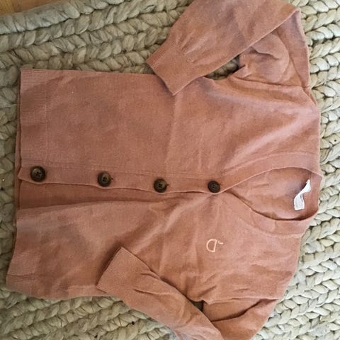 Näppärästi naisten S-koon paidasta tuunattu 140-senttiseksi huolettomalla pesulla. Merinovillaa ja Hilfigerin tägi hihassa. Pääntie v-aukkoinen.