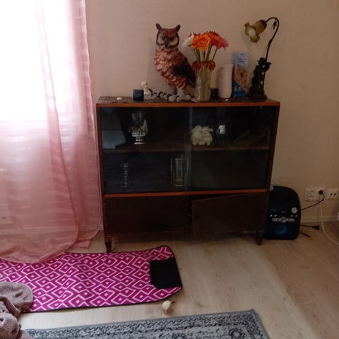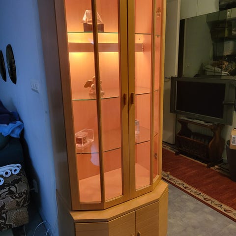 Kaikki hyvässä kunnossa, toki muutamia naarmuja tullut vuosien saatossa sekä vitriinikaapin ovessa kissan kynsimäjäljet, näkyy kuvissa.