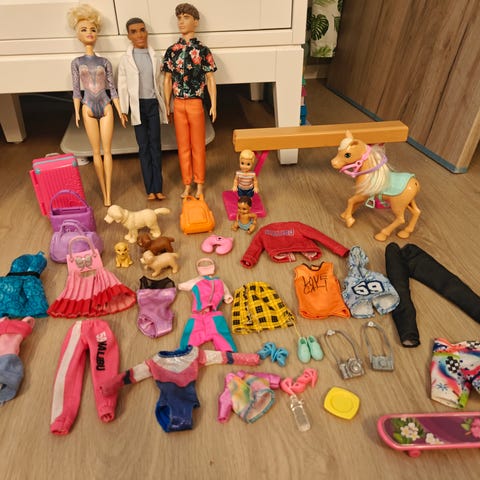 Barbie nukke- ja asustesetti sisältää useita nukkeja ja asusteita. Mukana on eri värisiä ja tyylisiä vaatteita sekä kenkiä. Setti tarjoaa monipuolisia leikkimahdollisuuksia ja sopii hyvin lasten leikkeihin. Nukkejen ja asusteiden materiaalit ovat kestäviä ja turvallisia.
