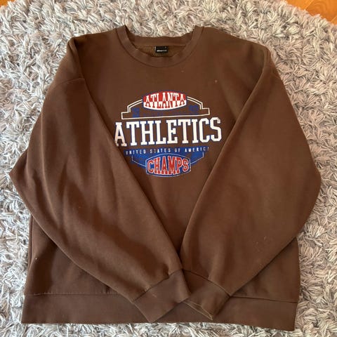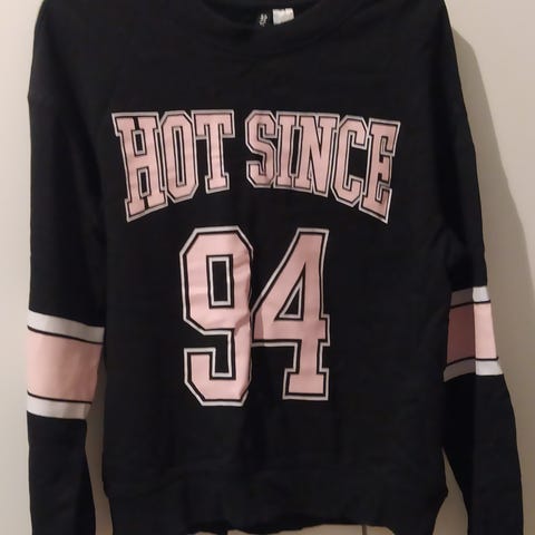 Myydään harmaa/vaalea H&M collegepaita, edessä teksti 'COSMIC". Koko M.