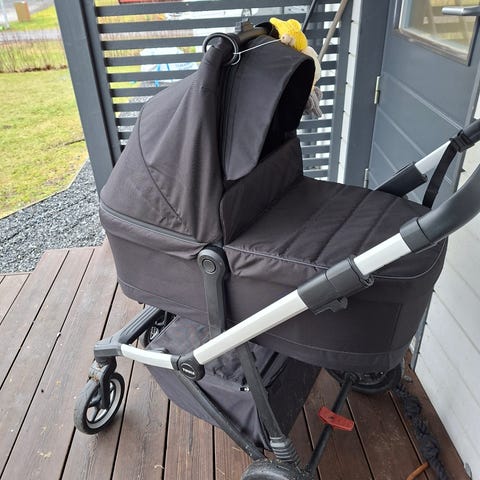 Thule sleek vaunujen ratasosa. Aurinko on haalistanut kangasta, mutta muuten hyvässä kunnossa. Mukaan etukaari ja sadesuoja.